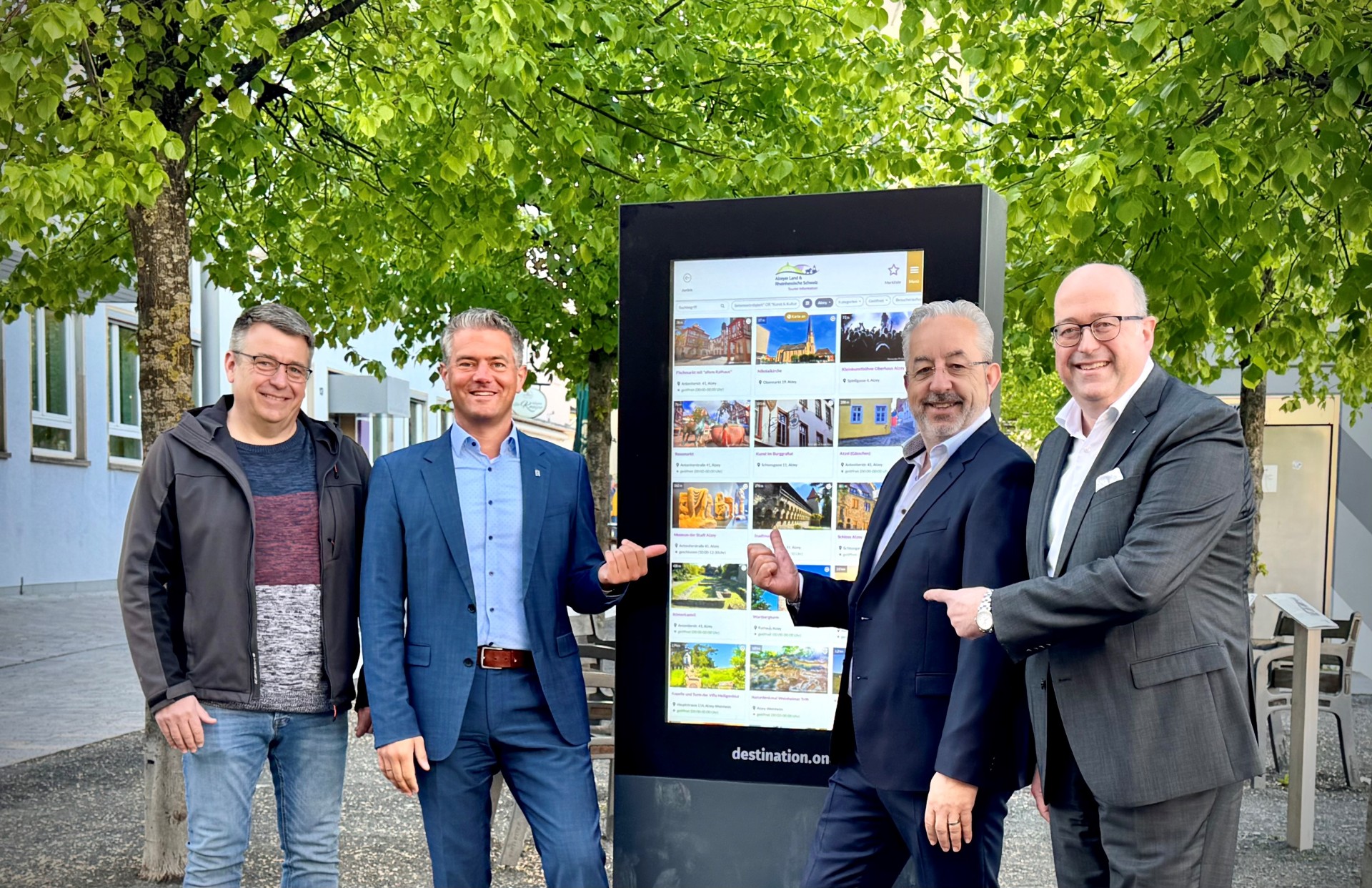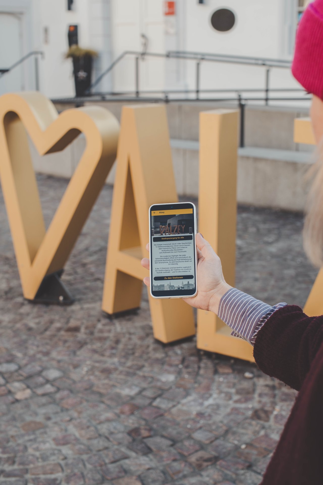 Man sieht den Fotopoint Alzey der vor dem Museum steht (dort steht ein Herz neben dem Schriftzug "Alzey" in gold)