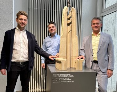 "Es ist nun deutlich wertiger als im Durchgangsbereich und viel besser sichtbar für alle an einem repräsentativen Platz in der Verwaltung", freut sich Bürgermeister Jung über das gelungene Resultat. Marc Amstad betont, dass der Altstadtverein sich gerne für das Modell eingebracht hat. "Sowohl das Planungsmodell als auch das Original in der St.-Georgen-Straße gehen auf die Initiative des Vereins zurück", erklärt Amstad. "An neuer Stelle auf dem ins Gesamtbild passenden Sockel kommt das Modell des Denkmals ganz neu zur Geltung", freut sich der Altstadtvereinsvorsitzende. Stadtarchitekt Pascal Agather zeigt sich ebenfalls begeistert von dem "sehr schönen Projekt" und dankt besonders Steinmetz und Bildhauer Klaus Bambach für die umsichtige und fachkundige Montage des Modells auf seinem neuen Sockel.