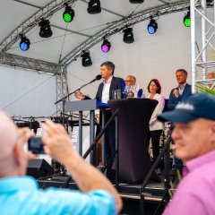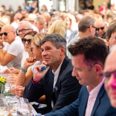 Die repräsentative Weinprobe mit der Verleihung des Scheupreises wurde dabei zum emotionalen Zentrum des Winzerfestes. Der diesjährige Preisträger, Weltschiedsrichter Dr. Markus Merk, nahm die Auszeichnung sichtlich bewegt entgegen. Laudator Wolfgang Bosbach begeisterte das Publikum mit einer eigens zusammengestellten „Merk-Hitparade“ und einer Rede, die Sport, Lebensweg und persönliche Nähe miteinander verband. Als die Wein- und Sektterrasse gegen Ende der Dankesrede von Merk gemeinsam „You’ll never walk alone“ anstimmte, blieb kaum ein Auge trocken – ein Gänsehautmoment, der wohl in die Geschichte des Winzerfestes eingeht.