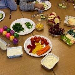 Das Ziel war es, den Kindern die drei Säulen eines gesunden Lebens näherzubringen. Denn neben gesunder Ernährung und ausreichender Bewegung ist auch Entspannung wichtig. Die Säule der gesunden Ernährung deckte das Lilly-Team gemeinsam mit den Kita-Kindern in Form von Brotgesichtern ab. Gemeinsam wurde Gemüse geschnippelt und aus den verschiedensten Zutaten lustige Brotgesichter gebastelt, die dann natürlich auch direkt verspeist wurden. Auf diese Weise wurden den Kindern gesunde Nahrungsmittel auf spielerische Weise nähergebracht. Eine Entdeckungstour der leckeren Art also. Das Lilly-Team hatte hierfür eine bunte Auswahl an Lebensmitteln mitgebracht.
