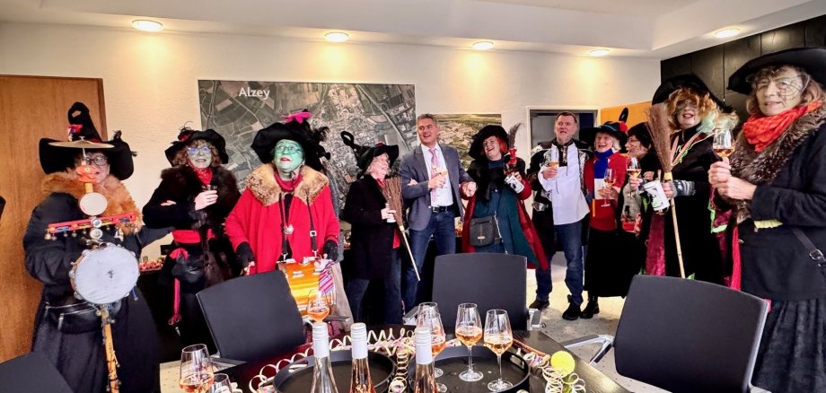 Pünktlich um 10:11 Uhr waren sie wieder unterwegs: Die Alser Hexen stürmten die Verwaltungen und Banken – mussten das Büro von Bürgermeister Steffen Jung jedoch ohne den begehrten Schlüssel zum Rathaus wieder verlassen. Diesen hatten sich nämlich bereits die jüngsten Narren im Stadtgebiet geschnappt. Die Hexen hatten jedoch ein anderes Ziel: Sie sammelten fleißig Geld „in de Bix“ für den guten Zweck. In diesem Jahr werden die Demenz-Wohngruppe in der Gänsewiese, die neue Terrassenmöbel benötigt, und das Frauenhaus Donnersbergkreis e. V., das in Alzey Wohnungen für Frauen auf dem Weg in die Selbstständigkeit betreibt und dringend kindgerechte Ausstattung benötigt, unterstützt. Wer die Aktion unterstützen möchte und an Altweiber kein Opfer der Hexen wurde, kann weiterhin spenden – per Überweisung an DE96 5535 0010 0022 4070 52 (Rheinhessen Sparkasse) oder per PayPal an Alserhexe@web.de.